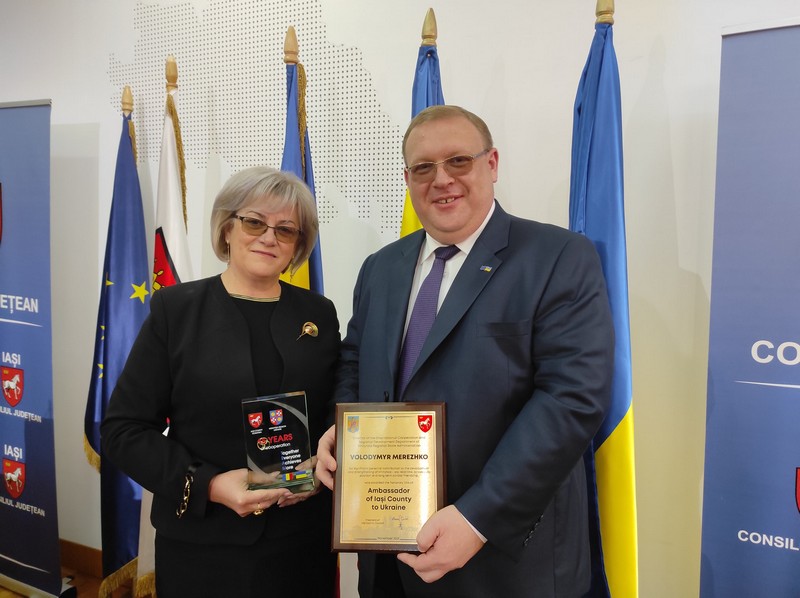 Крім того, в рамках заходу, за вагомий особистий внесок у розвиток українсько-румунське партнерство, багаторічну сумлінну працю та високий професіоналізм, Володимир Мережко був нагороджений відзнакою Ясського повіту Румунії в галузі міжнародного співробітництва.