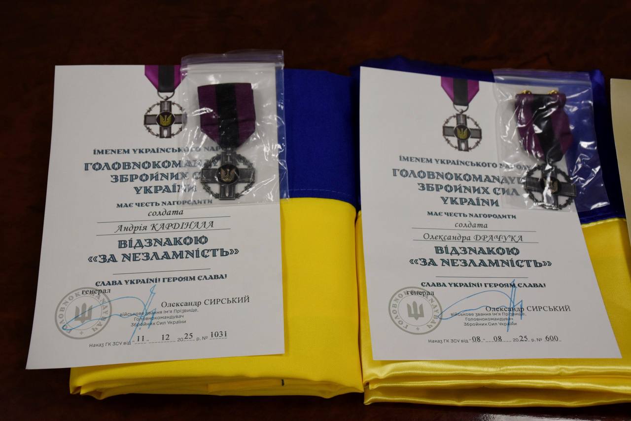 Нагороджений відзнакою «За Незламність» Наказ Головнокомандувача Збройних Сил України від 11.12.2025 року №1031 КАРДІНАЛ Андрій Григорович.