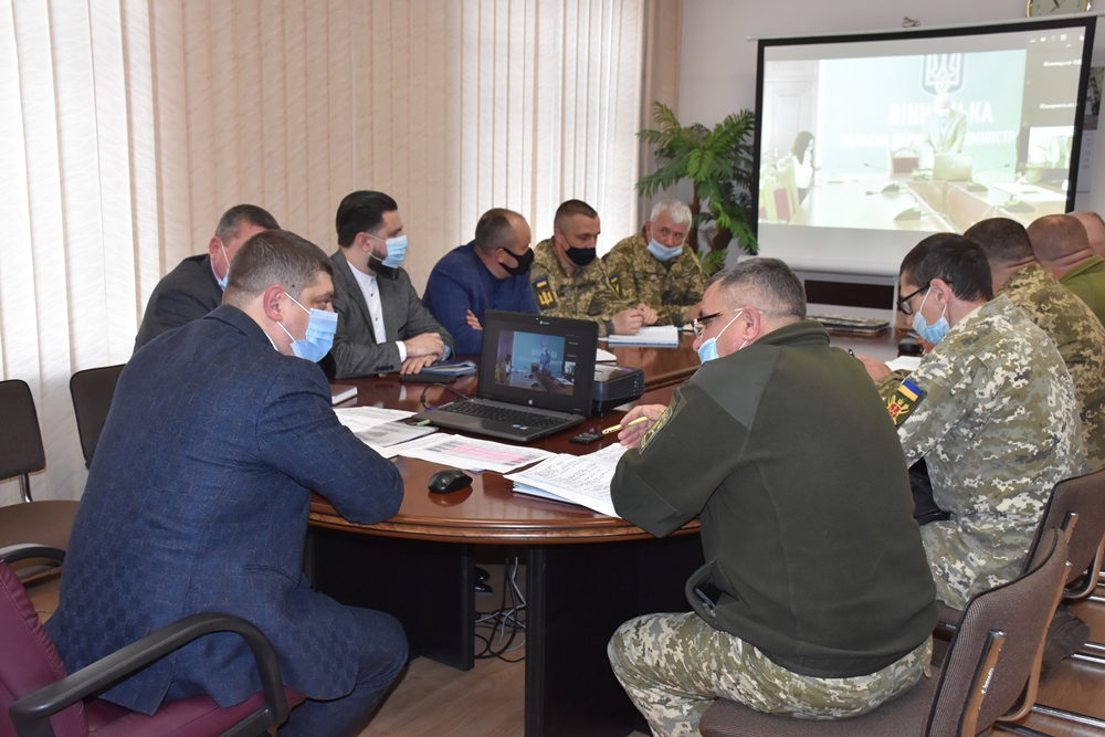Голова районної державної адміністрації Віталій Урдзік, спільно із заступниками Володимиром Коваль та Микою Чухрієм, та військові комісари територіальних центрів комплектування та соціальної підтримки Вінницького району взяли участь в обласній онлайн нараді з питань проведення призову громадян України на строкову військову службу.