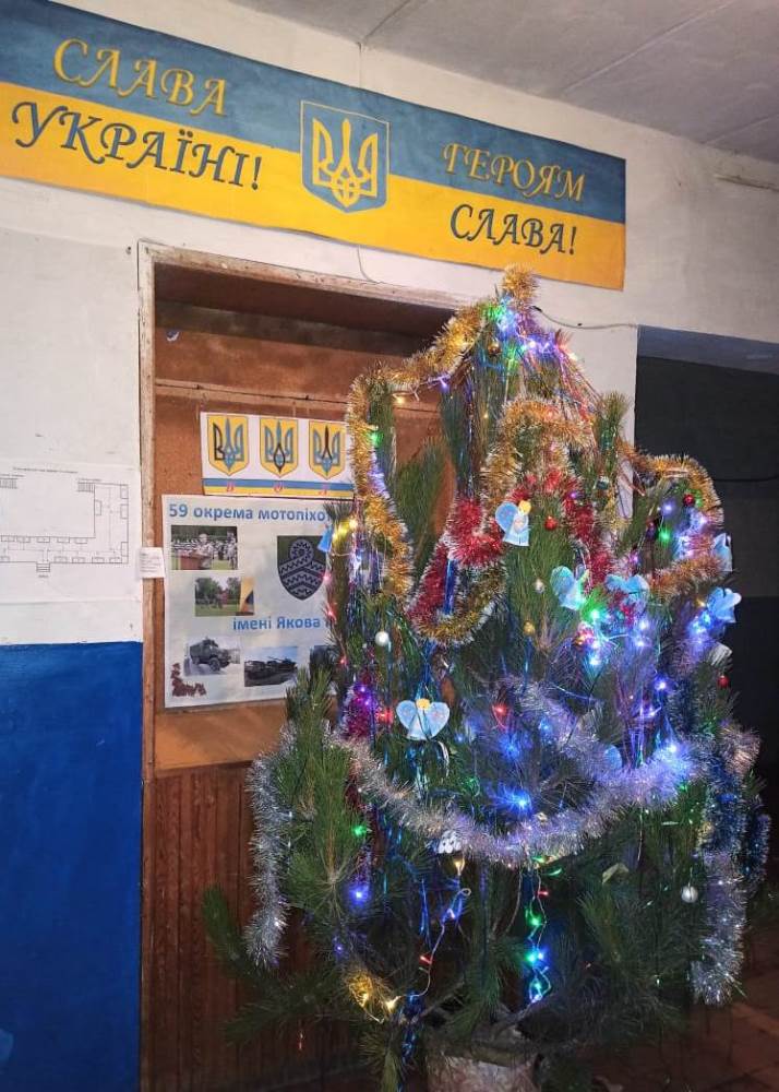 Для підтримання атмосфери зимових свят та створення святкового передноворічного настрою солдатами було встановлено і прикрашено новорічну ялинку.