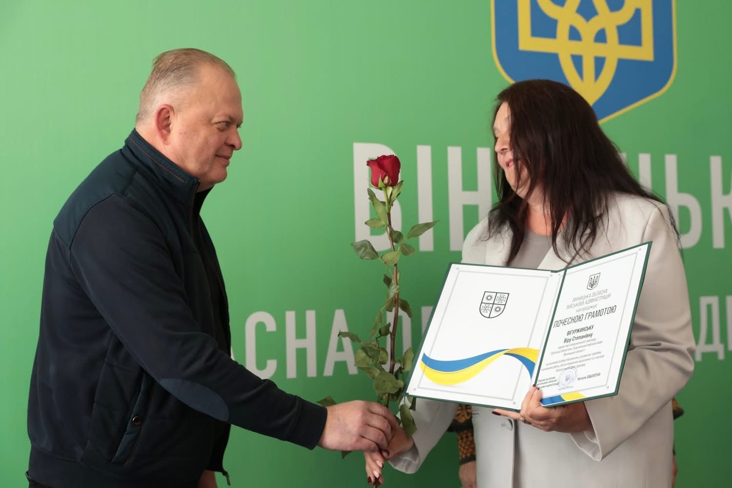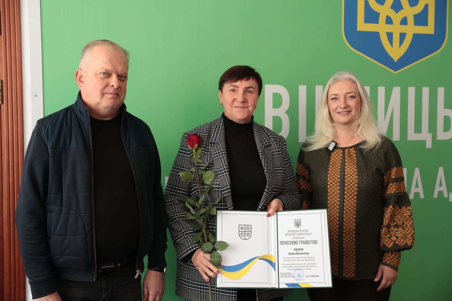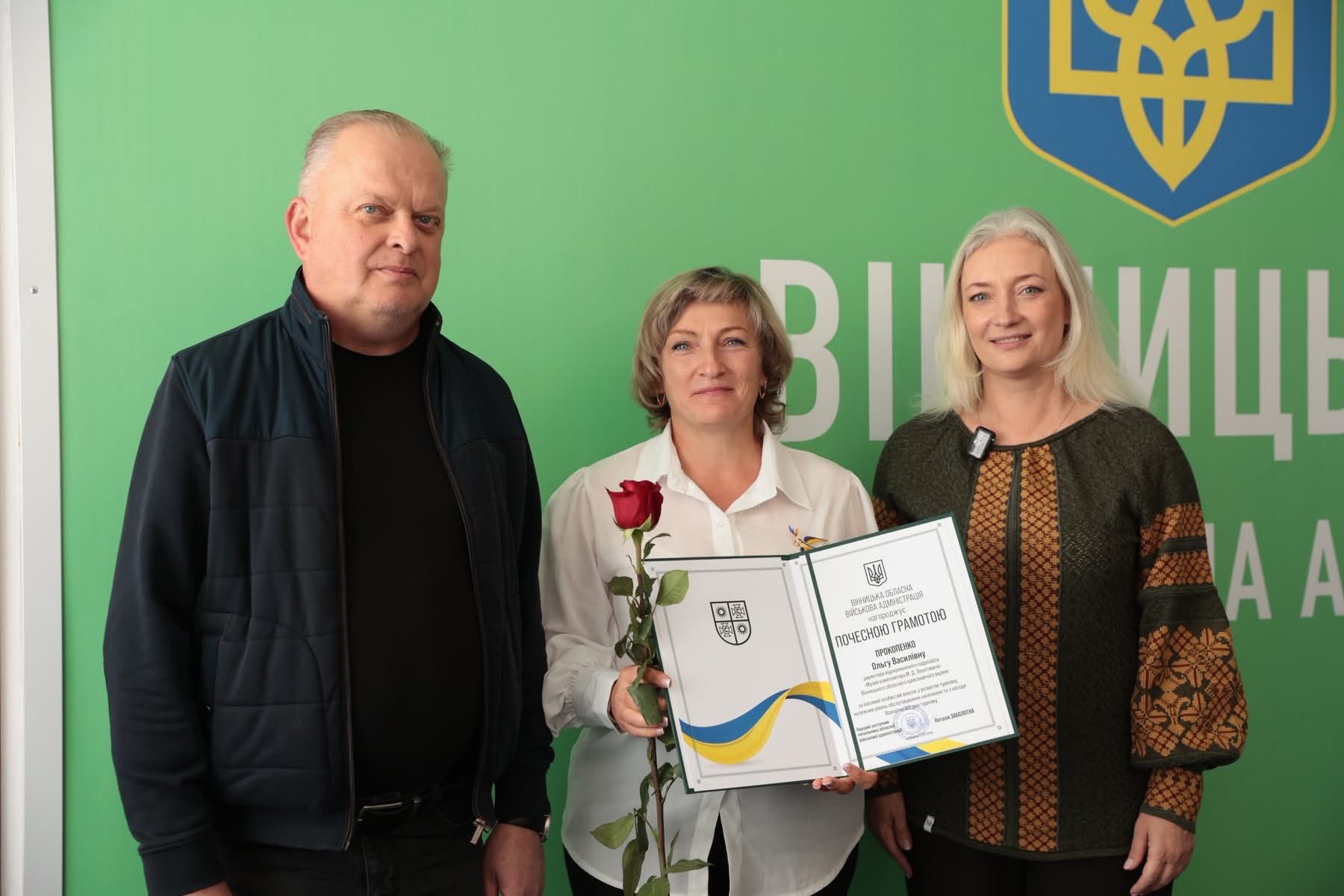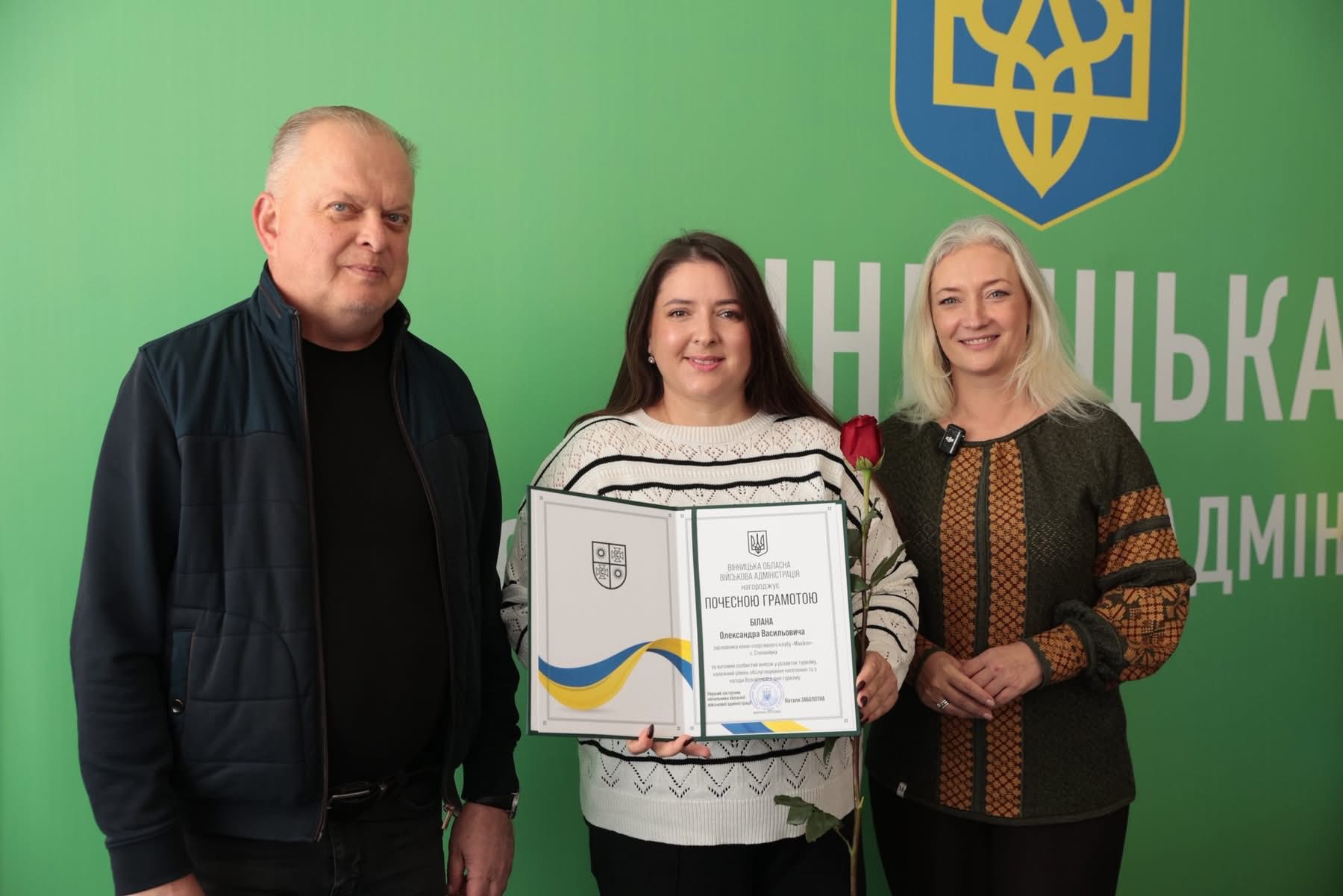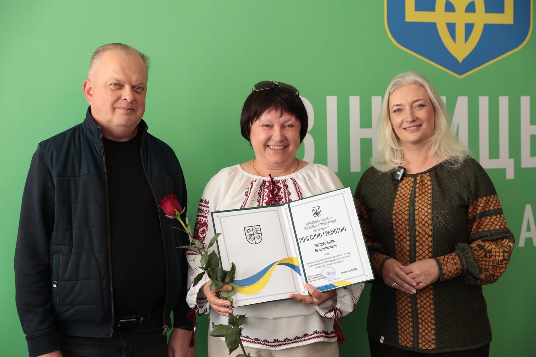 Перша заступниця начальника ОВА Наталя Заболотна та заступник начальника ОВА Сергій Здітовецький вручили Почесні грамоти обласної військової адміністрації кращим фахівцям у сфері туризму.