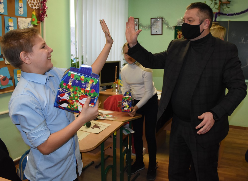 Євгеній Луценко та Григорій Дерун відвідавши кожен клас спеціальної школи вручили солодощі дітлахам та бажали міцного здоров’я, Божого благословення, успіхів у навчанні та завжди залишатися сповненими віри у щасливе майбутнє, щоб частіше траплялись дива. Побажали всім новорічної казки з дивами, сюрпризами, подарунками і щоб їх було більше з кожними роком.