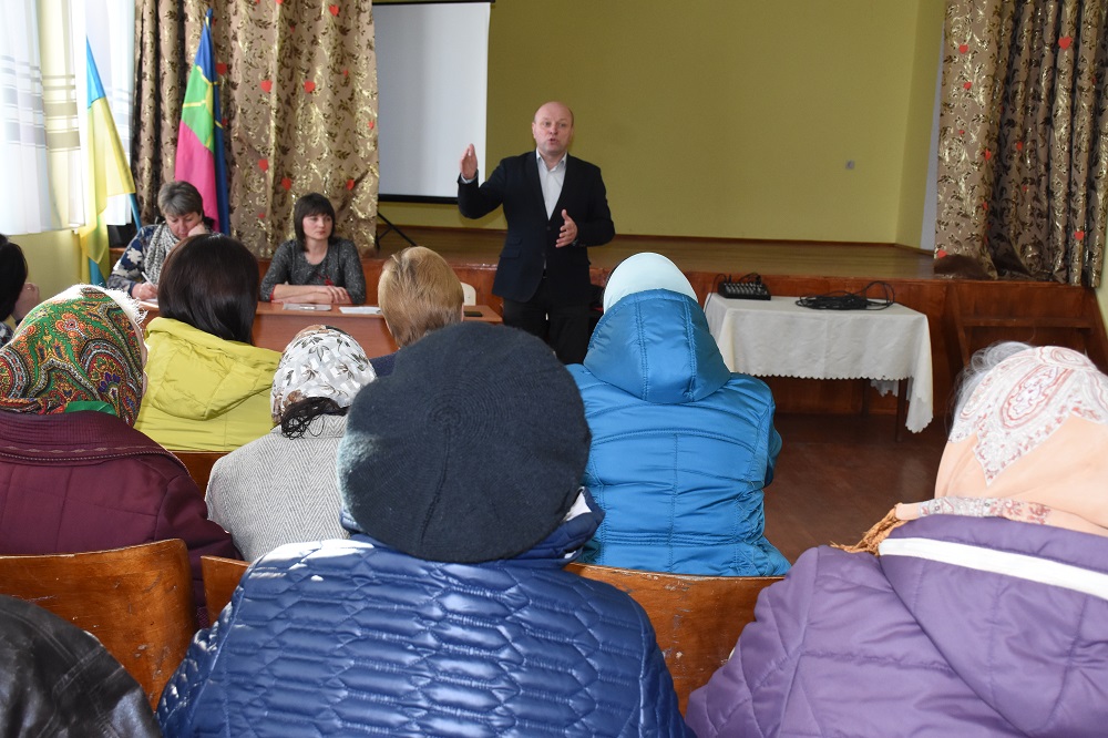 Перед початком зборів начальник управління праці та соціального захисту населення райдержадміністрації Надія Ходацька розповіла людям про виплату монетизованої субсидії та індексацію пенсій.