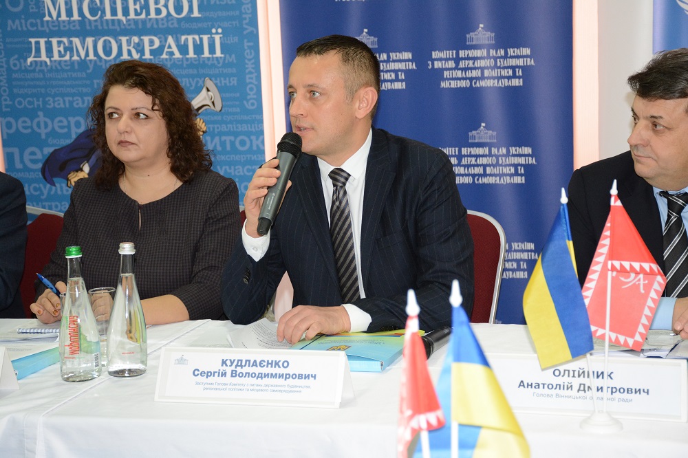 Засідання проходило під головуванням народного депутата України Сергія Кудлаєнка та за участю народного депутата України Олени Бойко, заступника голови облдержадміністрації Олександра Крученюка, голови Вінницької обласної Ради Анатолія Олійника, голови Вінницької міської ради Сергія Моргунова, представників місцевих рад області всіх рівнів, керівників та експертів проектів ПРООН, USAID, Центрального офісу реформ при Міністерстві регіонального розвитку, будівництва та житлово-комунального господарства України, Всеукраїнської асоціації органів місцевого самоврядування «Асоціація міст України», науковців, а також депутатів місцевих рад та громадських експертів з областей України.