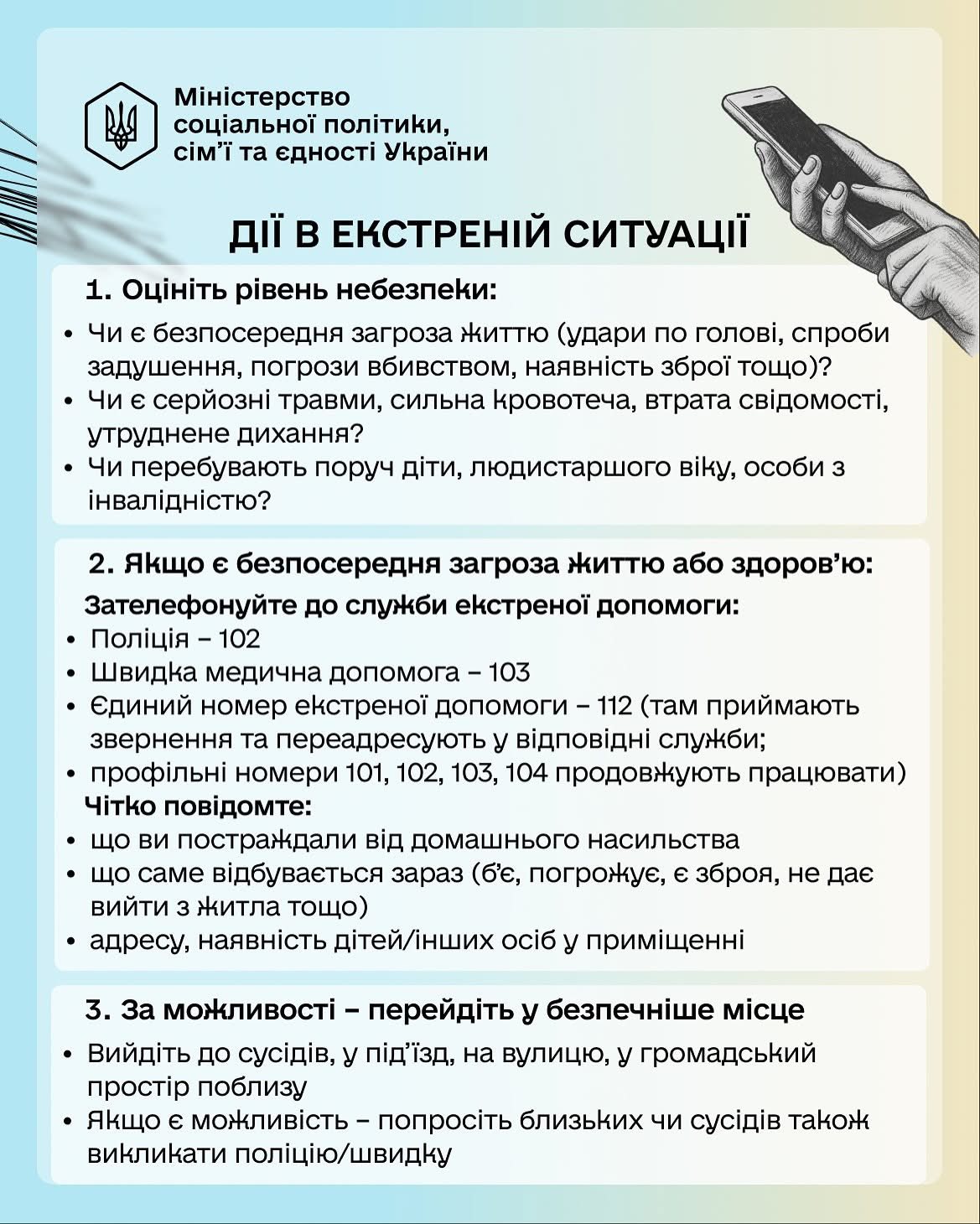 До Міжнародного дня боротьби за ліквідацію насильства над жінками ми підготували покроковий чек-лист — що робити в екстреній ситуації, які документи мати під рукою, як скласти план безпеки та куди звертатися по допомогу.